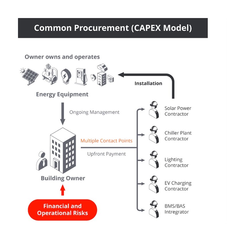 อุปกรณ์ที่เสื่อมสภาพมักนำไปสู่การสิ้นเปลืองพลังงานและค่าใช้จ่ายด้านพลังงานที่ควบคุมได้ยาก โดยอุปสรรคอันดับหนึ่งต่อการปรับปรุงระบบเก่าให้ดีขึ้น คือต้นทุน (CAPEX) ที่สูงนั่นเอง ซึ่งนำไปสู่วังวนของการสิ้นเปลืองพลังงาน รวมถึงต้องคอยตามแก้ปัญหาระบบอย่างไม่รู้จบ