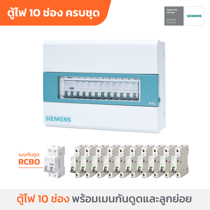 ซีเมนส์ ตู้คอนซูเมอร์ยูนิตครบเซ็ต 10 ช่อง พร้อมเมนกันดูด 50A