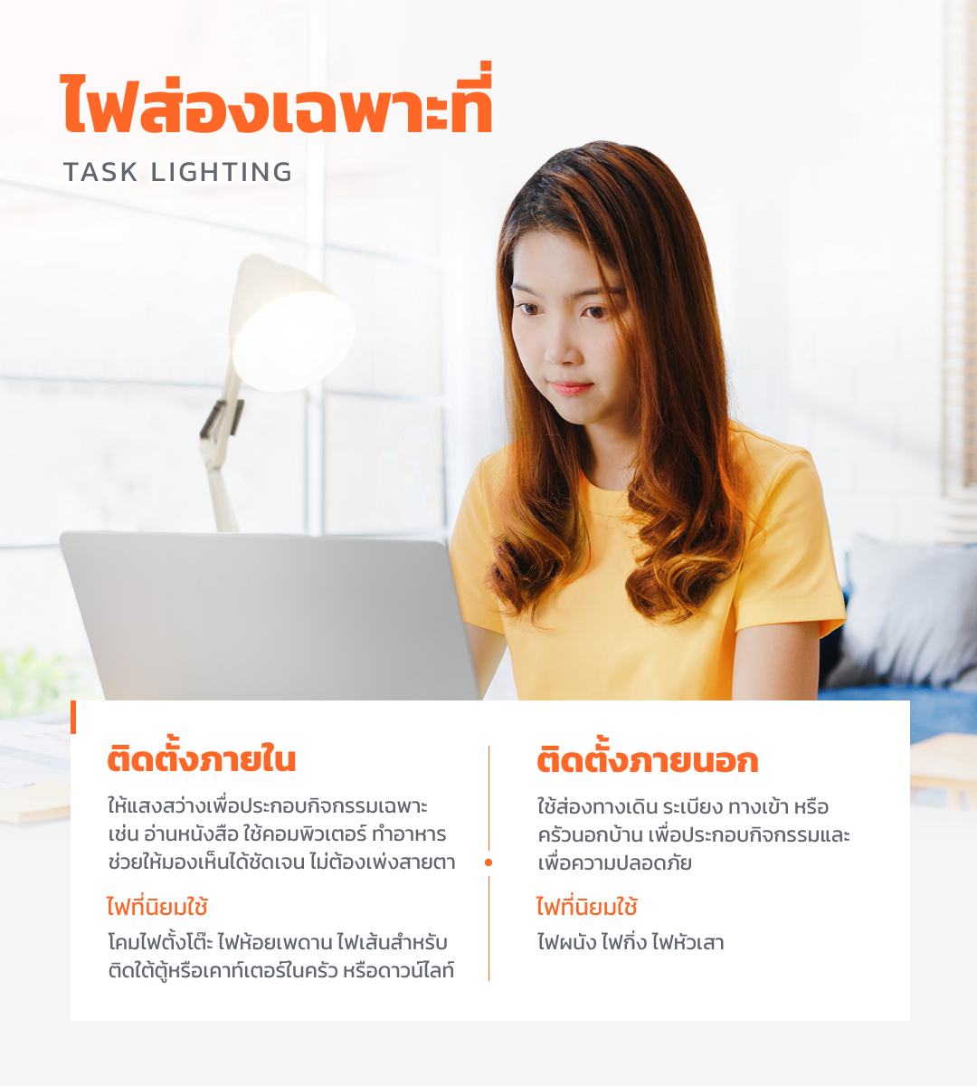 2. ไฟส่องเฉพาะที่ (Task Lighting)